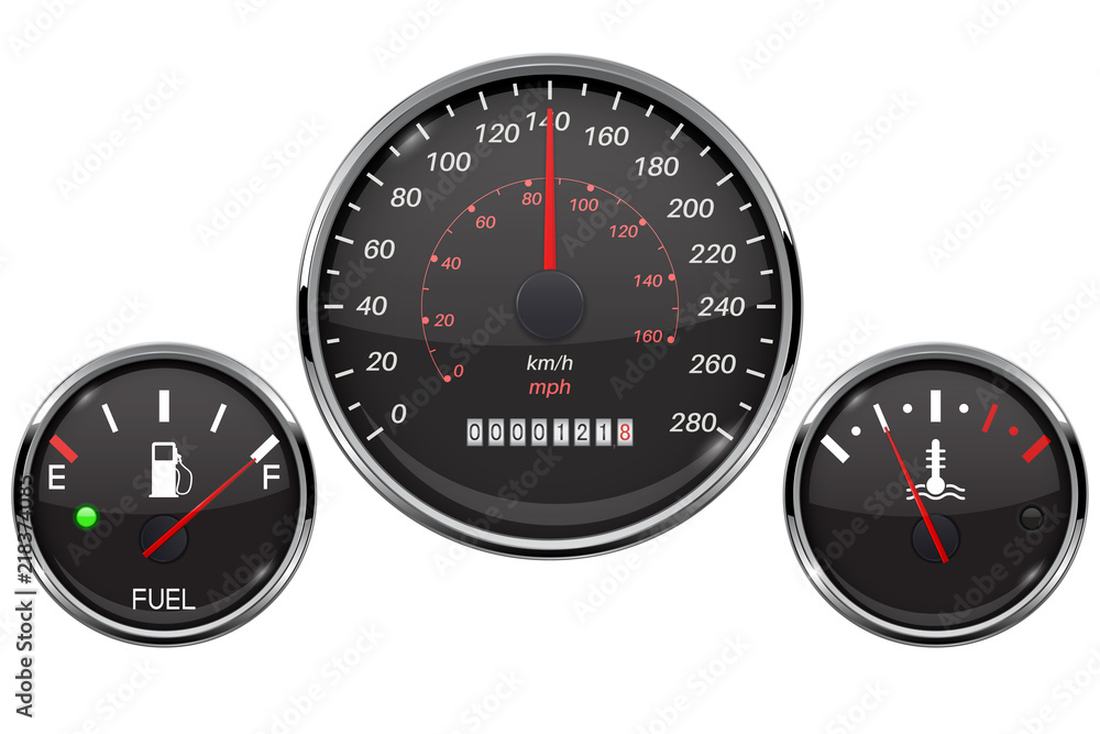 Car dashboard black gauges set. Fuel gauge, speedometer, temperature indicator #218374085