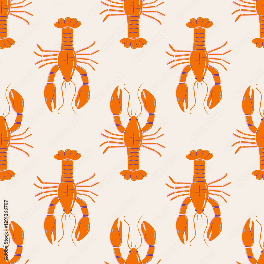 Seamless vector pattern with abstract lobster illustration. Marine animal silhouette on background. Sea food texture for wallpaper, textile, fabric, wrapping paper #1291266707