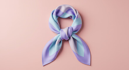 • #858675121 Against a blue sky background a lightweight foulard scarf flutters gently in the wind.